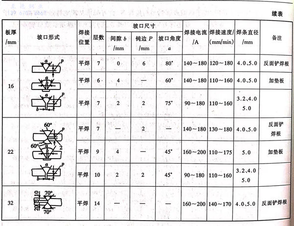焊(han)前,焊(han)條要按照要求進行烘干,防(fang)止氣孔的產生(sheng)。坡口和焊(han)件待焊(han)處(chu)兩側各(ge)20mm表面應清理(li)干凈,不(bu)(bu)應有(you)油(you)污、油(you)漆、氧化皮(pi)及其(qi)他雜(za)質,必要時(shi)要用酒(jiu)精(jing)或(huo)丙酮清洗,甚至要進行打磨,否則,焊(han)縫金(jin)屬會產生(sheng)氣孔和增(zeng)碳,降低接頭的耐腐蝕性能。不(bu)(bu)銹鋼焊(han)條一(yi)般選擇(ze)直流(liu)反極性進行焊(han)接,對于鈦型或(huo)鈦鈣型藥皮(pi)焊(han)條,也可采用交流(liu)電源(yuan)進行焊(han)接。由(you)于不(bu)(bu)銹鋼焊(han)條容易發(fa)紅,焊(han)接時(shi),一(yi)般選擇(ze)相對較小(xiao)的焊(han)接電流(liu),常見的焊(han)接參(can)數見表6-1.