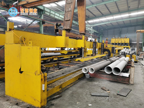 目前,公司生產最大口徑不銹鋼(gang)無縫管可達到 1020 mm,厚度可以達到 80 mm,單支鋼管重量近5000 kg,廣泛用于電廠及石油化工行業。同時,生產軸用不銹鋼(gang)厚壁管,外徑、厚度與直線度公差均高于國家標準,主要用于制軸制輥。